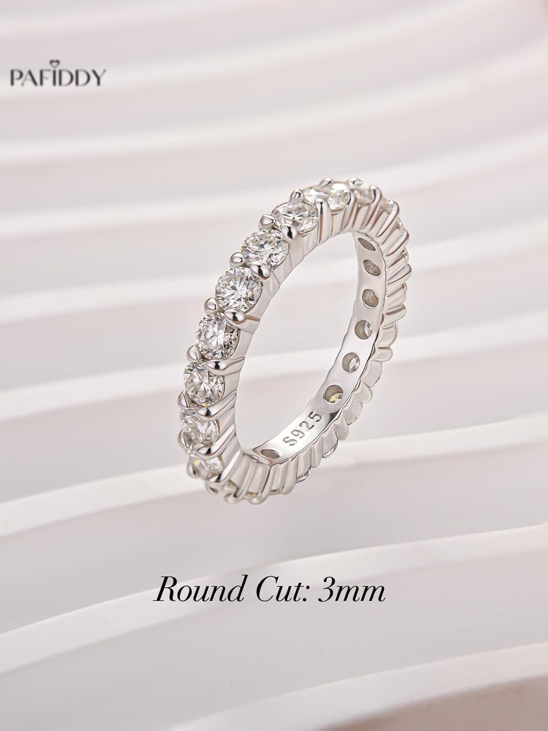 Love in Full Bloom, Forever Radiant Celebrate the beautiful journey of your love with the PAFIDDY Round Cut Halo Moissanite Anniversary Ring— more than just jewelry, it’s a poetic expression of your enduring bond, crafted to shine as brightly as the day you first committed to each other. A Vision of Multi-Layered Brilliance At the heart of this exquisite ring lies a magnificent round-cut moissanite, renowned for its unparalleled ability to capture and reflect light. Surrounding this centerpiece is a dazzling halo of accent stones, designed to amplify the main stone’s sparkle— but the magic doesn’t stop there. The band itself is adorned with 22 meticulously inlaid round-cut 3mm moissanite stones, creating a continuous glow that wraps around your finger, symbolizing the unbroken circle of your love. Uncompromising Quality, Inside and Out We believe beauty should never be compromised, which is why every moissanite in this ring meets the highest standards: a D color grade for pure, icy whiteness, VVS1 clarity for near-flawless transparency, and an Excellent cut to maximize fire and brilliance. With a total carat weight of 2.50ct (encompassing the center stone, halo accents, and 22 band stones), this ring offers the look and feel of high-end diamond jewelry at a fraction of the cost. Enduring Beauty, Crafted to Last a Lifetime Constructed from genuine 925 sterling silver, the ring’s band is polished to a mirror-like shine and layered with premium 18K white gold plating (enhanced by platinum plating) to ensure durability. This finish not only delivers the elegant, cool luster of white gold but also provides superior resistance to tarnish, scratches, and daily wear— so your ring remains as beautiful as your love story for years to come. The secure claw setting holds the center and halo stones firmly in place, while the 22 small moissanite stones on the band are inlaid with precision, ensuring a smooth, comfortable fit for all-day wear. A Thoughtful Token of Your Love Whether you’re marking a milestone anniversary, celebrating a special moment, or simply wanting to remind your partner how much they mean to you, this Pafiddy moissanite ring is the perfect gift. It arrives elegantly packaged in a Pafiddy box, ready to be presented to the love of your life. Give her the gift of brilliance, durability, and sentiment— a ring that will serve as a constant reminder of your unwavering love.