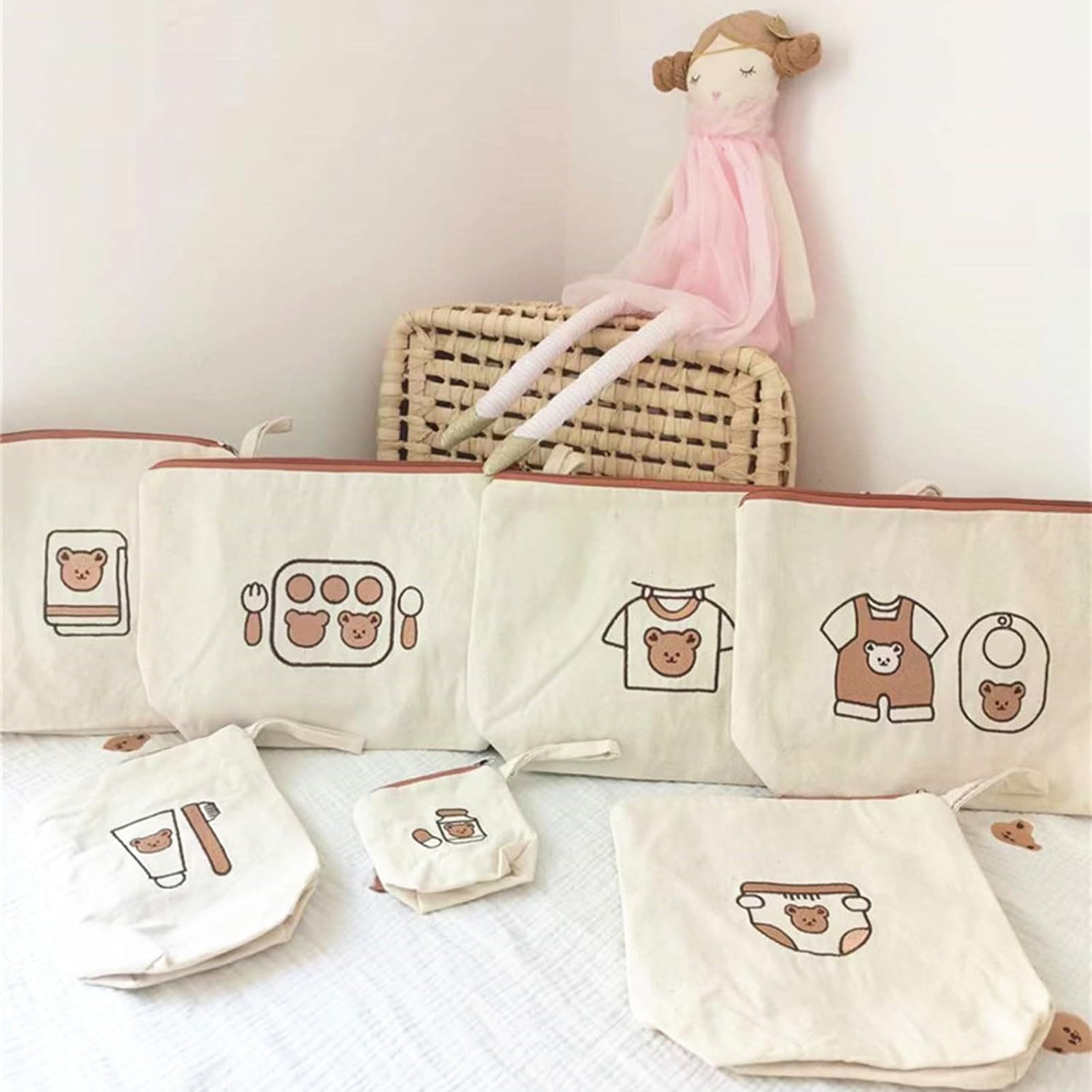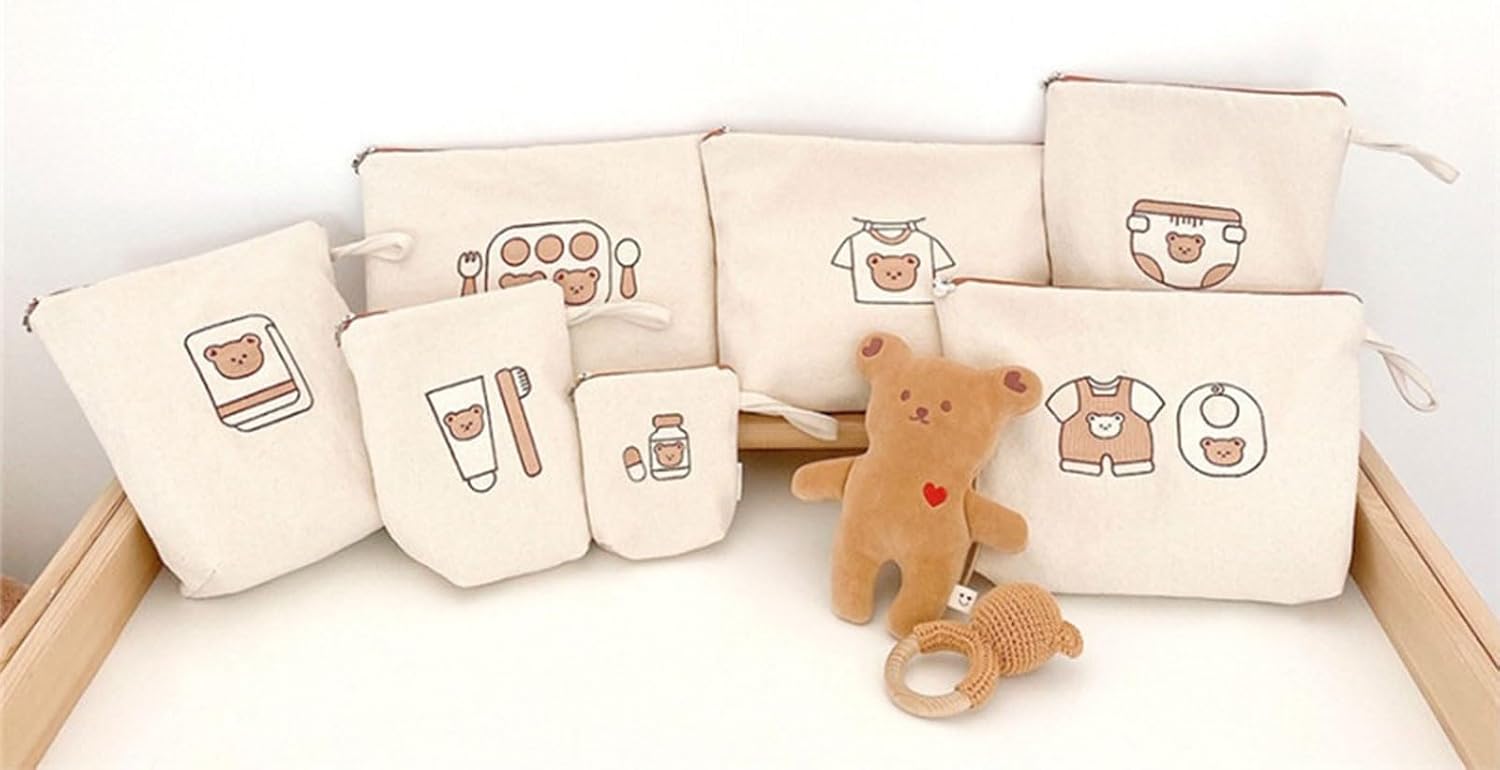 Features: Keep everything in order with this 7pcs set baby diaper bag, crafted from canvas and waterproof layer for easy use. Waterproof lining ensures and practicality, essential for busy families. Suitable for parent, this bag set provide storage for diapers, bottles, wipes, , catering to your need. for outings or travel, these portable storage bag attach easily to strollers, offering convenience wherever you go. and functionality with this nappy set, designed to simple daily routine and elevates your experience as a parent. Specifications: : Canvas+waterproof layer Type: embroidered bear, embroidered squirrels, printed checkered bear(optional) Size: about 12x11x4cm/4.72x4.33x1.57", 17x20x7cm/6.69x7.78x2.75", 23x24x7cm/9.05x9.44x2.75", 31x21x7cm/12.2x8.26x2.75" Note: Please allow 1-2cm errors due to manual measurement. Please allow for slight color differences due to different display resolution. Package includes: 7Pcs/set Baby Diaper Bag