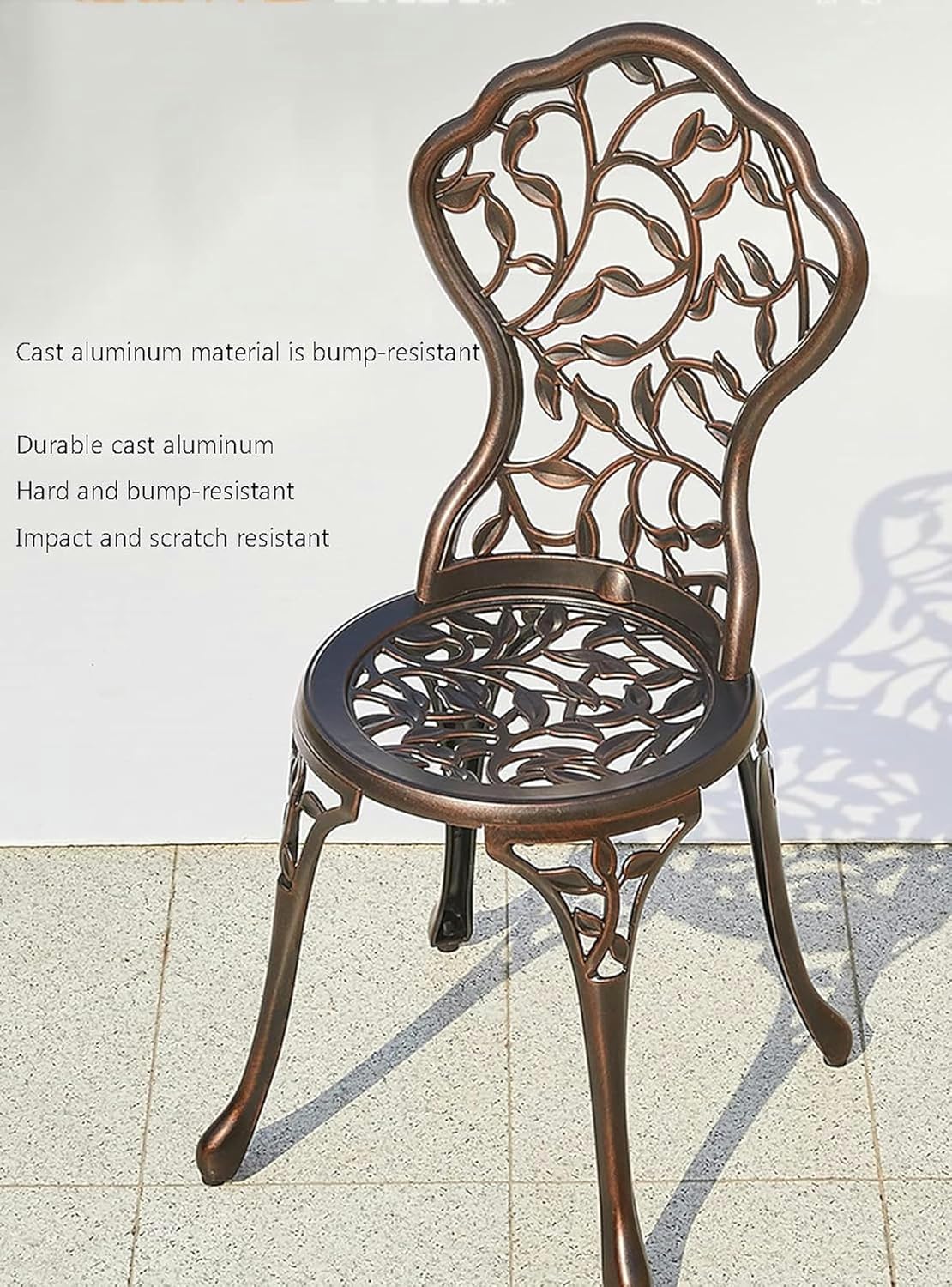 →Welcome to my store! There are a variety of chairs for you to choose from, there is sure to be one that suits you. Product featuresChoose DurabilityHighly durable and long-lasting prevent unwanted damage causedDress up Your Gardencan fully dress up your garden to make it more colorfulEnjoy the SunshineMake you fully enjoy the sunshine on sunny days spend a pleasant leisure time outdoorsLong Lasting UseOur product made with premium materials durability, and ensure each product is intactParty with Family & FriendsSuitable for gathering with family and friends to create more unforgettable memories with them Product informationProduct name:Garden Bench Style: Modern minimalist Product Type: Outdoor Cast Aluminum Tables and Chairs Product material: Cast aluminum chair, cast aluminum table top Scope of application: Indoor and outdoor can be used Product features: Tables and chairs need to be installed Product advantages: Waterproof and corrosion-resistant, ergonomic design Product maintenance: Tables and chairs can be washed directly with water Cushion size: 40*40CM Packing listGarden Furniture Set x1 Cushions x1 User Manual x1