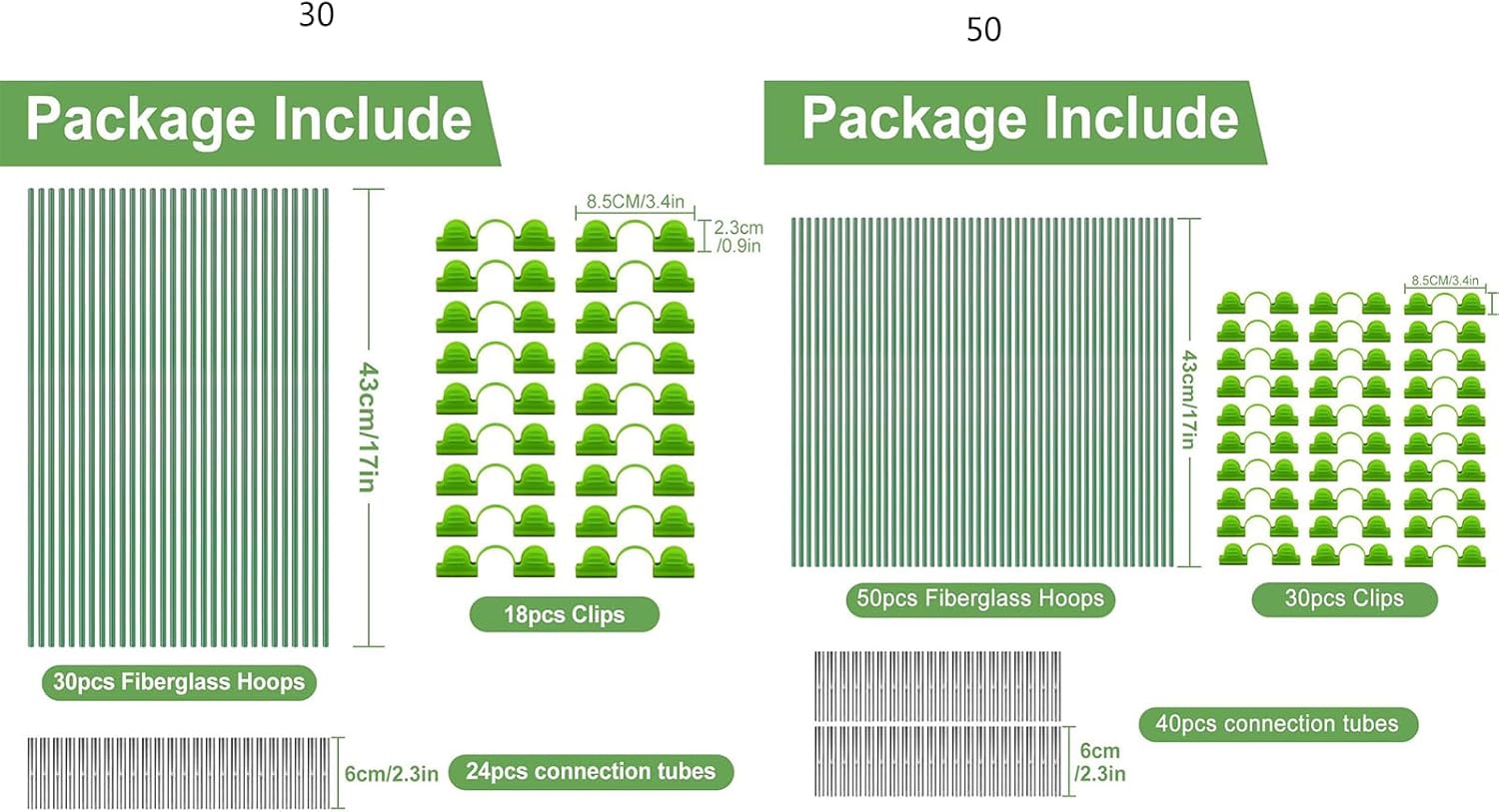 Garden Hoop For Raised Beds Wide Garden Tunnel Hoop For Row Greenhouse Hoop Growing Tunnel For Garden BedsFeatures:and This set of plant frames provide stable for your plant, from falling over. The frames can adjust to fit different types and sizes of plant.Easy installation and dismantle, this garden stake set is for garden enthusiasts, farmer who enjoy planting a variety of flowers and vegetables.Suitable for various planting area such as flower beds and orchards, this plant ensures health plant growth and maintains a neat appearance.Create organized and visually appealing garden with these plant frames.Take your gardenexperience with this plant Say goodbye to drooping plant and welcome a flourishing garden that bring satisfaction and beauty.Specifications:Type 30Pcs 50Pcs Package Includes:2 Optionals Package:Package 1 Include:30Pcs Garden Hoop 18Pcs Clip 24Pcs TubesPackage 2 Include:50Pcs Garden Hoop 30Pcs Clip 40Pcs TubesNote:1.Please allow 1-2cm errors due to manual measurement, make sure that you not mind before you order. 2.Due to the differences between different monitors, the picture may not reflect the actual color of the item.