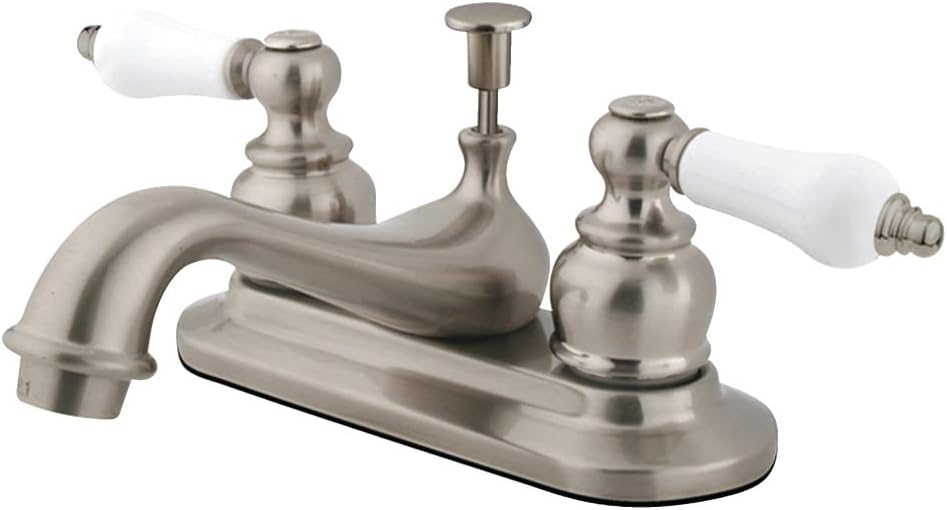 The Kingston Brass Restoration Centerset Lavatory Faucet provides an elegant touch to any home bathroom. With a traditional design, this faucet is suitable for almost all classic and transitional décor scenarios. The handles turn easily and the faucet is installed with durable washerless cartridges for drip-free performance. The faucet is constructed from solid brass to ensure its quality and reliability. A retail pop-up drain is included and the faucet installs on standard US plumbing connections.