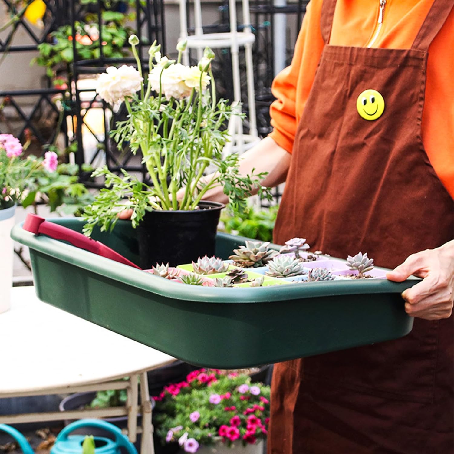 Luwint Portable Garden Potting Tray for Mixing, Growing, repotting, Seed Starting Tray & Potted Succulents The garden tray is a must have garden accessories for your indoor gardening work. Made of high quality plastic, this durable tray is ideal for home gardening, transplanting, potting and watering. You can put soil in and to be able to plant seedlings or repotting plants to keep you from making a big mess on potting table or back patio. And also perfect for plant transplanting or keeping plants and a shipment of succulents on display and keep watered. Rounded Edges: The angle is more safer for your operation. Thickened and flanged for easy handling. The surrounding height can prevent soil and wastewater from polluting the floor of the home when changing the basin. Smooth surface, waterproof, easy to clean. Gardening Table: Large space can be used to turn the pot and change the soil to keep the environment clean. Multifunctional Seedling Tray: It can be used with the nursery bracket more quickly and practically.