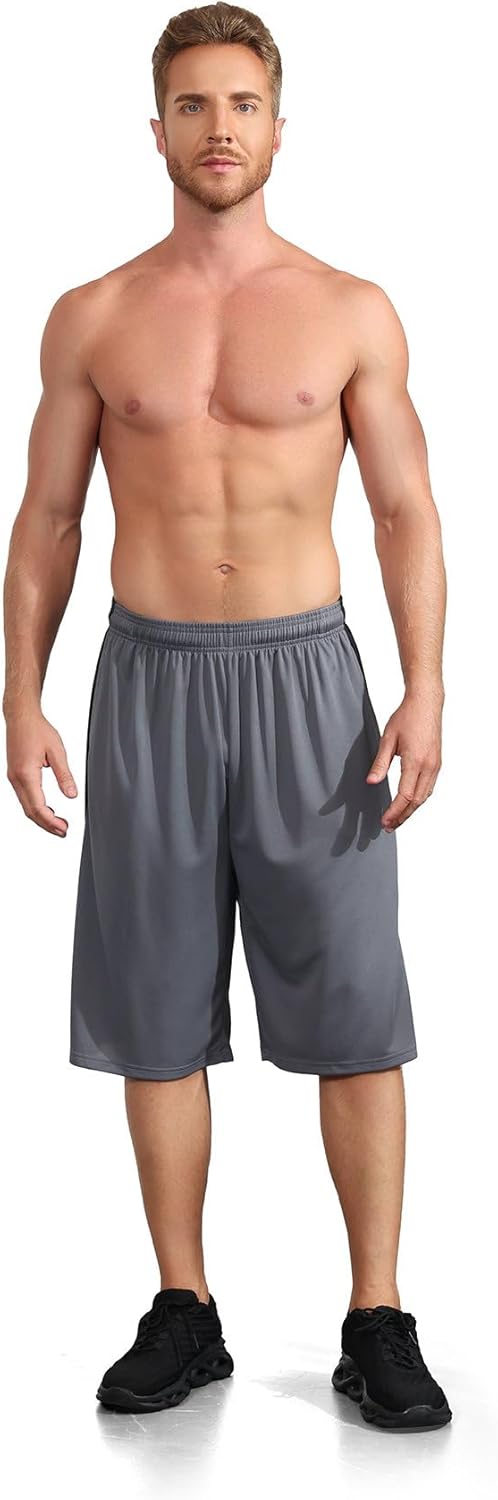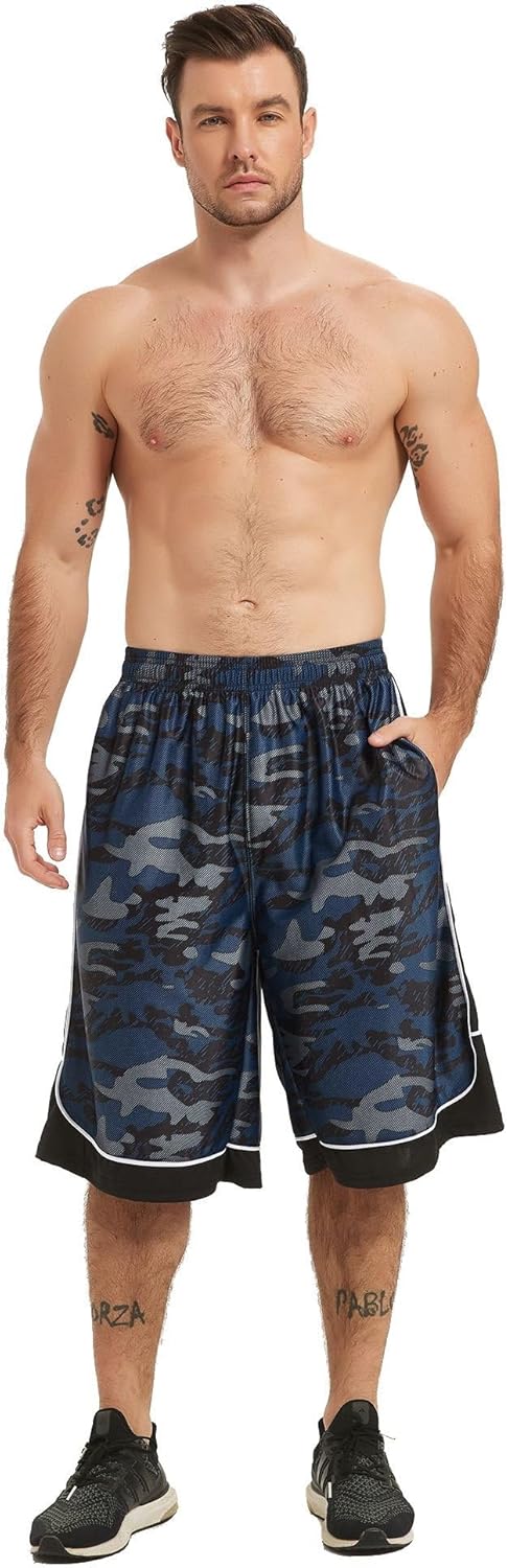 LukBerd Men's 12" Shorts Athletic Gym Quick Dry Long Basketball Shorts Loose-Fit with Pockets. WHY CHOOSE US ? [CAMO/MESH FABRIC] Made with selected high quality polyester fabric. Lightweight, sweat wicking, quick dry, and durable. [ADJUSTABLE FIT] The elastic waist of these men's active shorts with djustable built-in drawstring for a solid comfort feel. No Liner. [POCKETS DESIGN] Large side pockets that securely carry your phone, keys and other essentials. [MOVE FREELY] A relaxed fit with two sides ergonomic design for easy mobility. [MULTIPLE OCCASIONS] These sport basketball shorts are knee-length, also perfect for workouts, basketball, football, volleyball, tennis, baseball, badminton, exercise, training, cycling, running, hiking, jogging, boxing, etc.