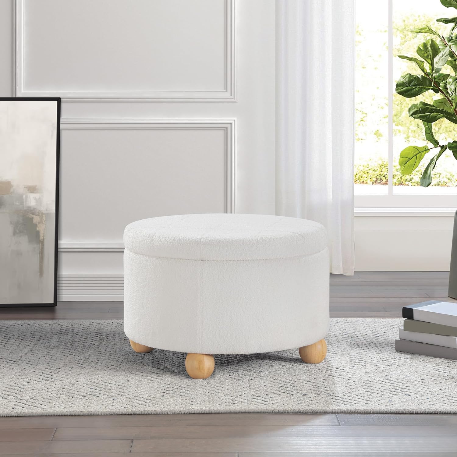 This ottoman is so chic and so versatile. Ideal for storing extra items, a soft place to kick your feet up, or a trendy seating option, there will always be a place for this ottoman. A padded soft exterior and fully lined interior makes this an ideal item to furnish any room. Simply screw in the solid wood ball feet for instant assembly.