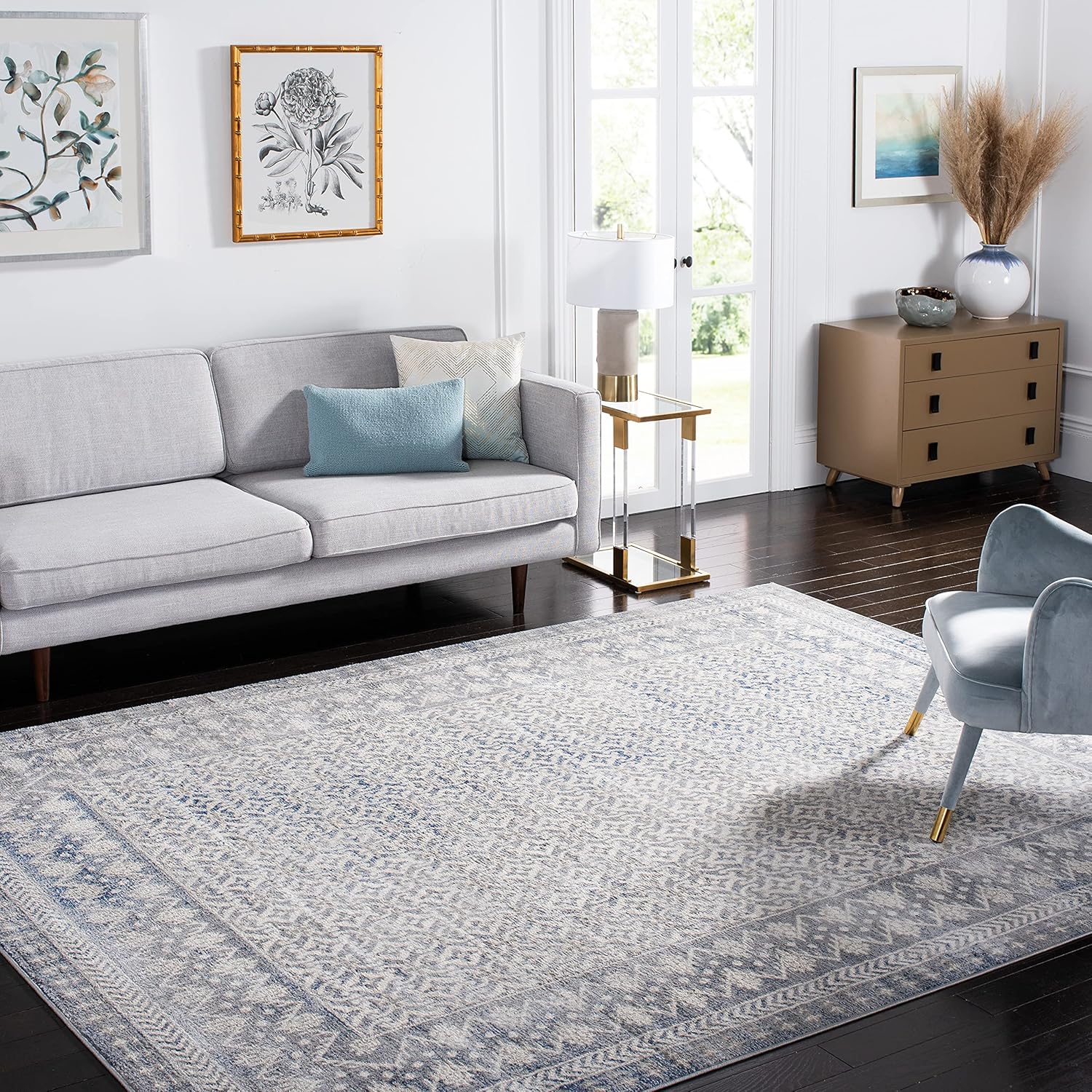 The Brentwood Collection by Safavieh features gorgeous heirloom-inspired traditional area rugs. This collection features a beautiful color palette of blue, grey, and cream. A vintage look is created from a power-loomed construction with virtually non-shedding enhanced polypropylene fibers to create a majestic look for any room of the home.