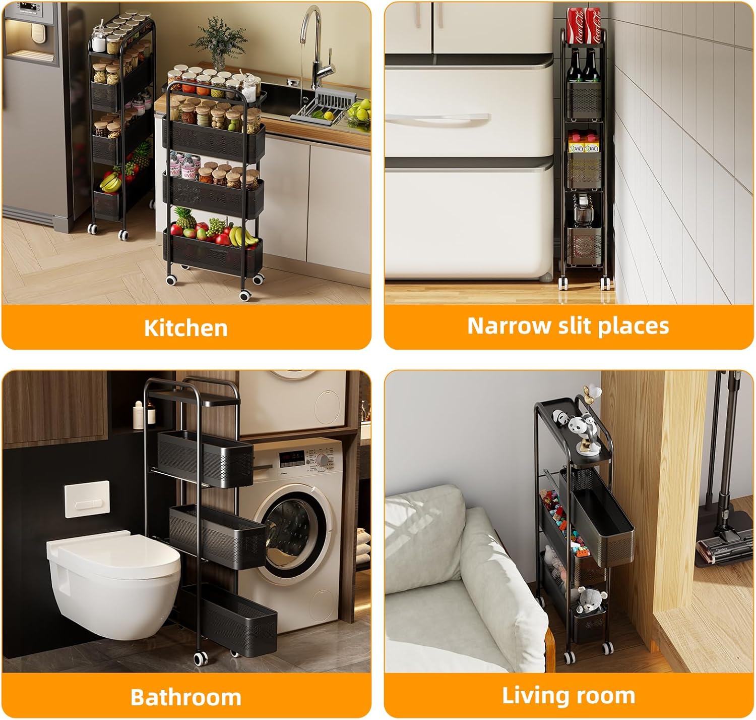 | Special Feature | Pull out metal basket slim storage cart |