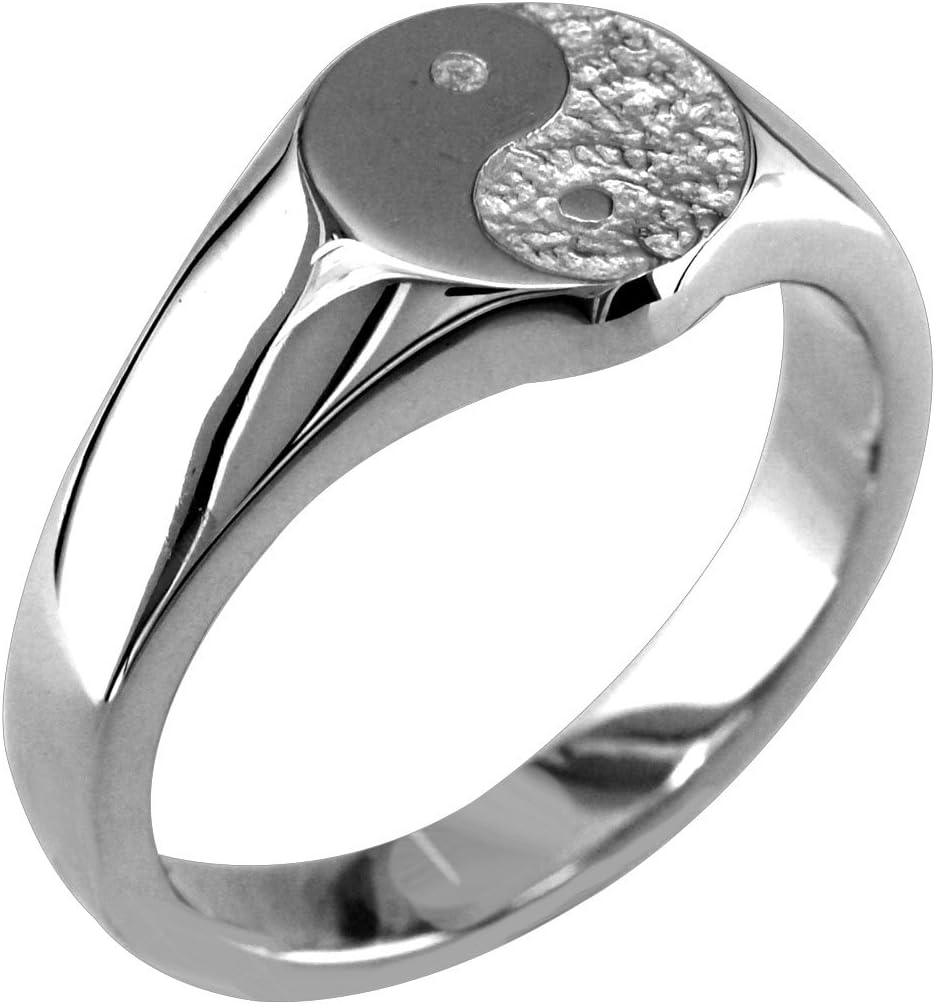 10mm wide yin yang ring for men. Ring is solid behind the symbol making this a nice heavy ring. Designed and expertly crafted by Sziro Jewelry with high quality materials. Made in the USA. 100% satisfaction guaranteed.