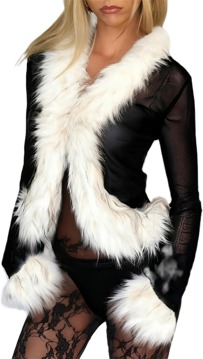 Embrace the Y2K revival with our Fuzzy Faux Fur Trim BlouseDesigned for the fearless fashionista, this top combines daring sheer panels with plush faux fur accents, creating a tactile contrast that demands attentionSpecification:Material: 100% PolyesterStyle: CasualSeason: Summer, Fall, SpringGender: WomenSize: S/M/LPackage Included1 X ShirtNote:1. Due to manual measurement, there may be small errors in size.2. Depending on computer monitor used, colors may be a little different from actual colors.