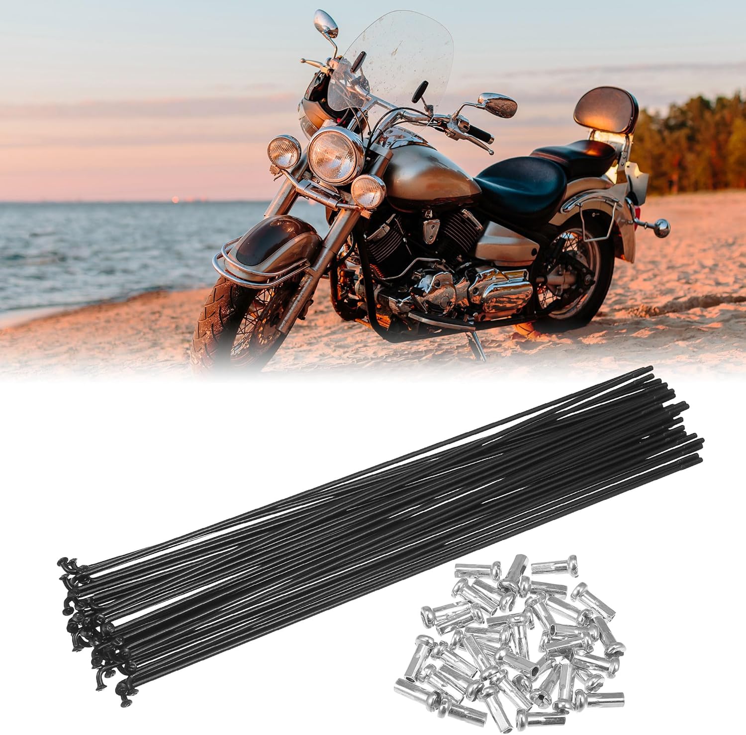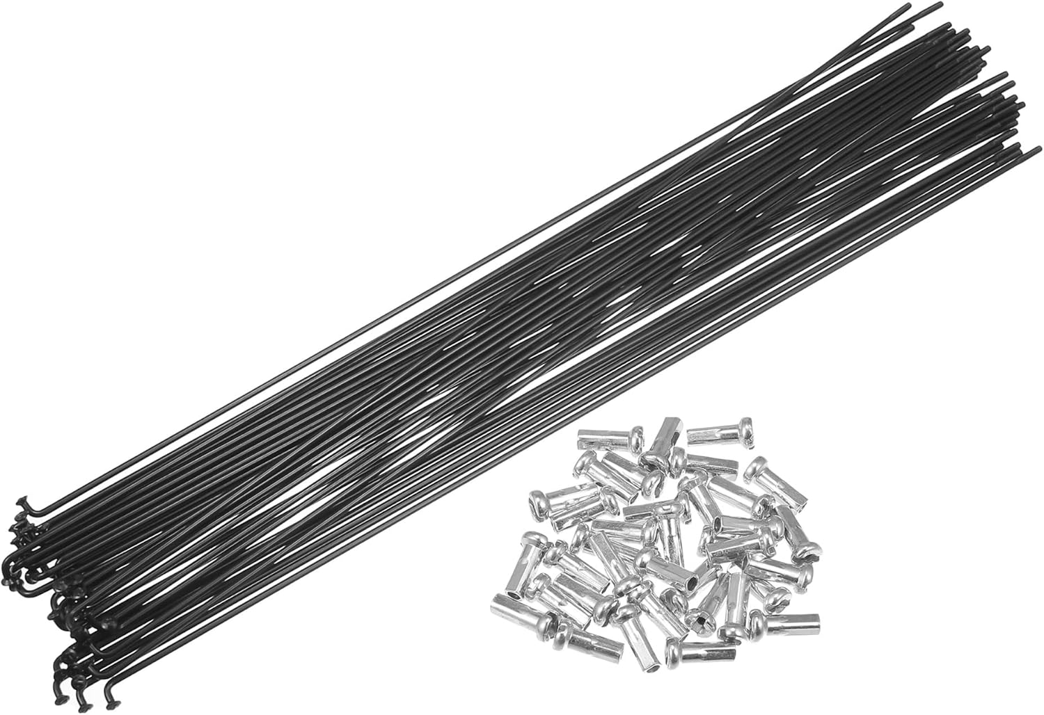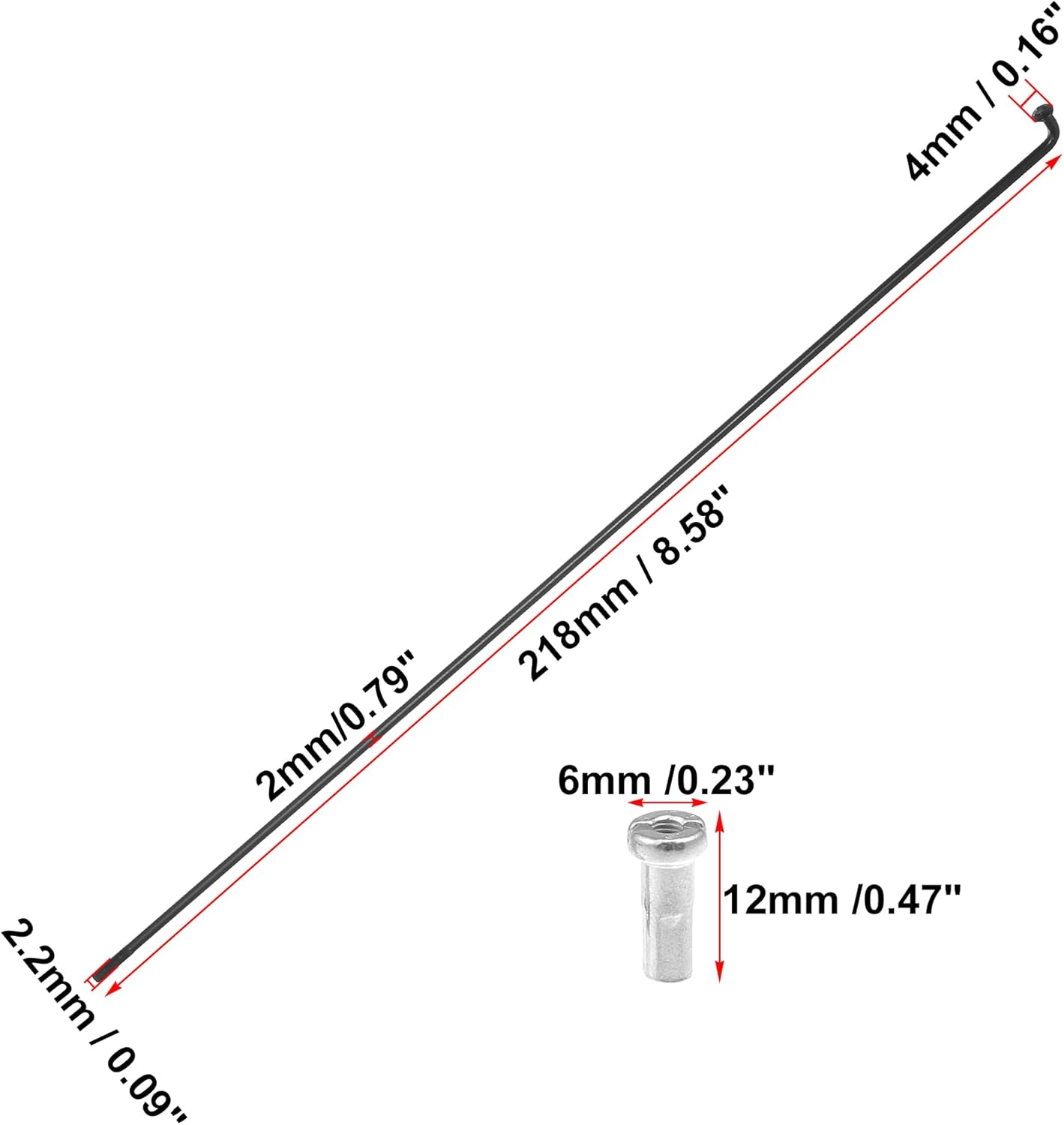 Description:Wheel spoke kit includes enough spokes and nipples to rebuild your bicycle wheel.Not only replace the spokes and nipples but upgrade them for race durability.The wheel uses a gradual continuous hammering technique that improves the oscillating load capacity.Spokes have good toughness and well anti-impact resistance, reducing the impact resistance of the wheel.Please allow a 3-5mm error!Specification: Color: BlackMaterial: Carbon SteelElbow Head Dia: 4mm / 0.16"(D)Spoke Shaft Diameter: 2mm / 0.79"(D)Nipples Size: 12x6mm /0.47"x0.23"(L*D)Spoke Thread Diameter: 2.2mm / 0.09"(D)Installation:According to the original arrangement of your wheel, so you can take a picture before installation.When installing, the two adjacent spokes on the wheel drum are mounted in the first and third holes in the same direction on the rim (two spokes spaced one hole).Package Includes:36 x Bicycle Carbon Steel Spokes36 x Nipples